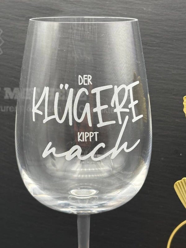 Graviertes Weinglas mit Spruch "Der klügere kippt nach"