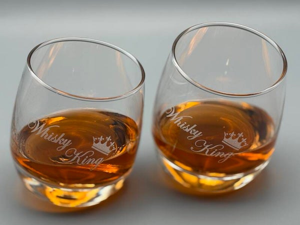 Veredelt werden die Gläser durch die Gravur „Whisky King“ in kunstvoll geschwungener Schrift. Eine stilisierte Krone thront schräg über dem Wort King – ein stilvolles Statement für wahre Genießer.