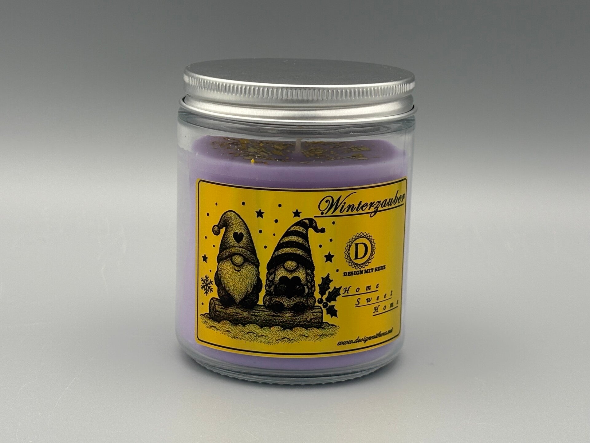 Präsentiert in einem transparenten Kerzenglas mit silbernem Schraubdeckel und einem glänzenden goldenen Etikett, das festliche Eleganz versprüht.
