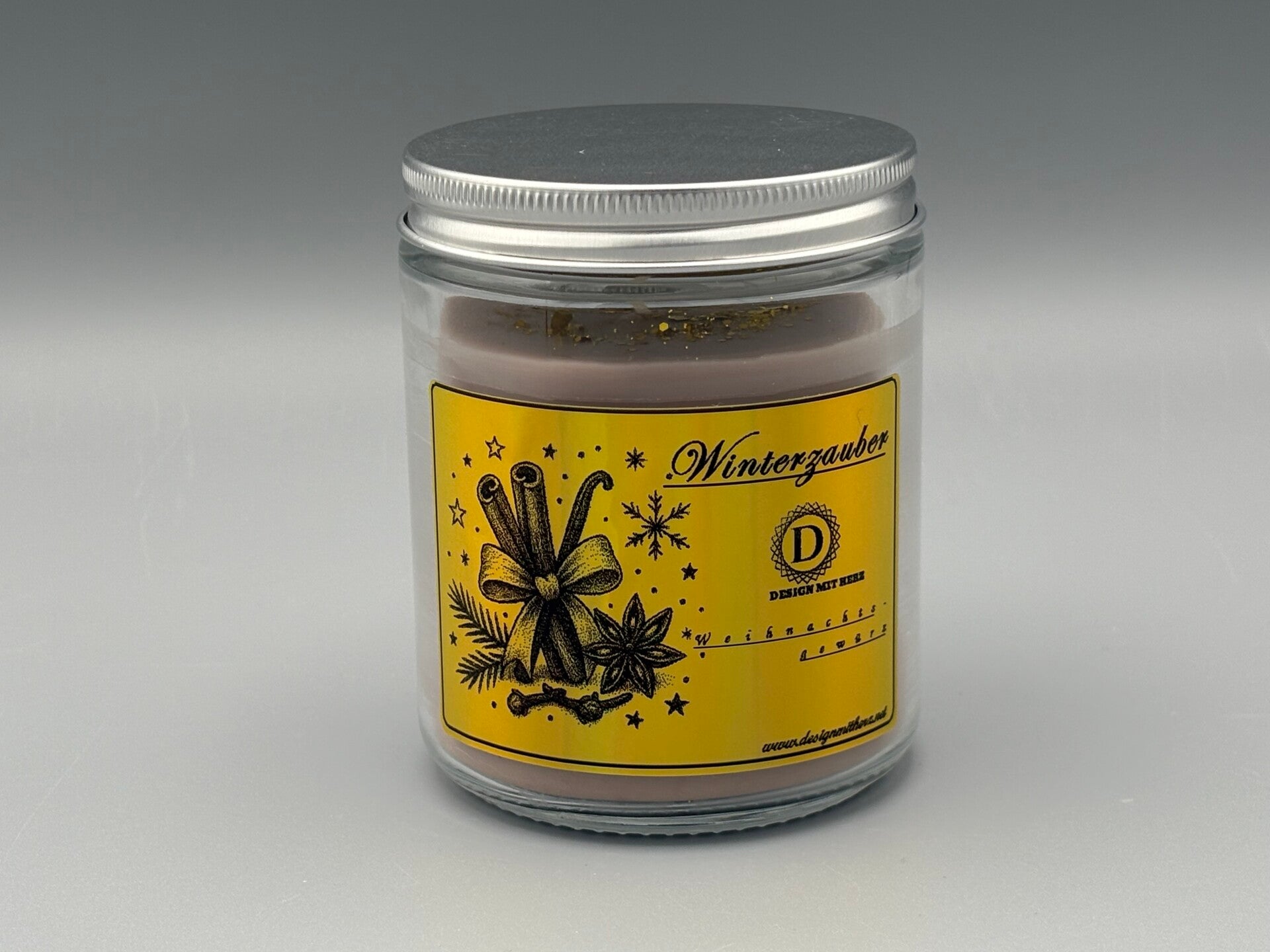 Präsentiert in einem klaren Glas mit silbernem Schraubdeckel und einem gold glänzenden Etikett, das festliche Wärme und winterliche Eleganz vereint.