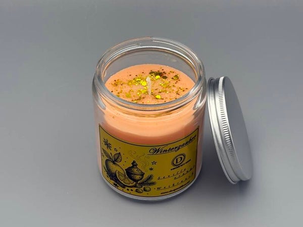 Winterzauber – Rapswachskerze mit fruchtig-warmem Duft von Sevilla-Orangen, würzigen Gewürzen und edlem Weihrauch